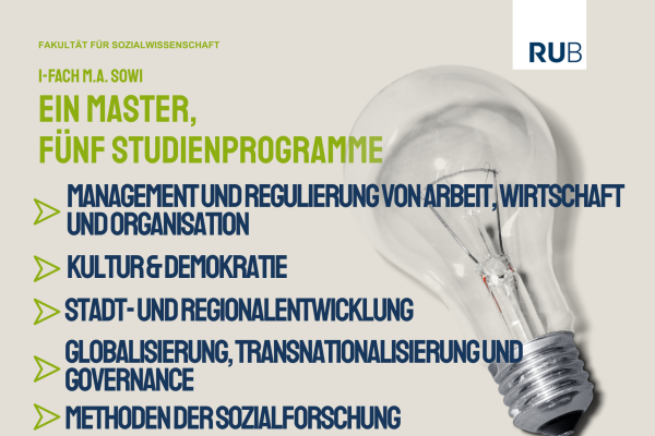 Studierende im 1-Fach Master Sozialwissenschaft haben die Wahl zwischen fünf spannenden Studienprogrammen. Die Programme geben dem Masterstudium einen thematischen Fokus, der aus interdisziplinärer Perspektive behandelt wird. Im Folgendem werden die Programme weiter ausgeführt: