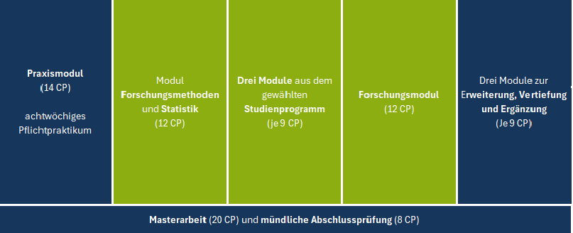 Das Studium der Sozialwissenschaft bietet ein hohes Maß an Flexibilität, so dass der Studienverlauf an die eigenen Interessen und Bedürfnisse angepasst werden kann. Wer hierzu Fragen hat, darf sich gerne an unsere Studienfachberater:innen wenden. Grundsätzlich empfehlen wir, mit den Studienprogrammmodulen und dem Mastermodul "Forschungsmethoden und Statistik" zu beginnen, um das Studienprogramm kennen zu lernen und schnellstmöglich die Grundlagen für das Forschungsmodul zu erwerben. Bei der Planung des Studienverlauf ist zu beachten, dass sich das Forschungsmodul über zwei aufeinanderfolgende Semester erstreckt - bitte insbesondere bei Auslandssemestern einplanen.